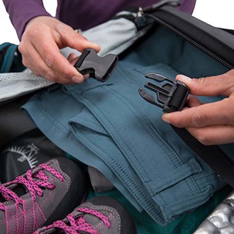 - Two internal compression straps secure load